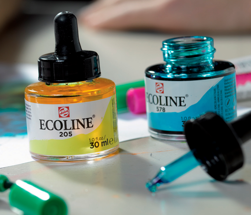 Gracias a su fórmula pura, a base de colorantes y goma arábiga, los colores de Talens Ecoline son de una transparencia y lucidez impredecible. Para conservar bien los colores, se aconseja guardar las obras en una carpeta.